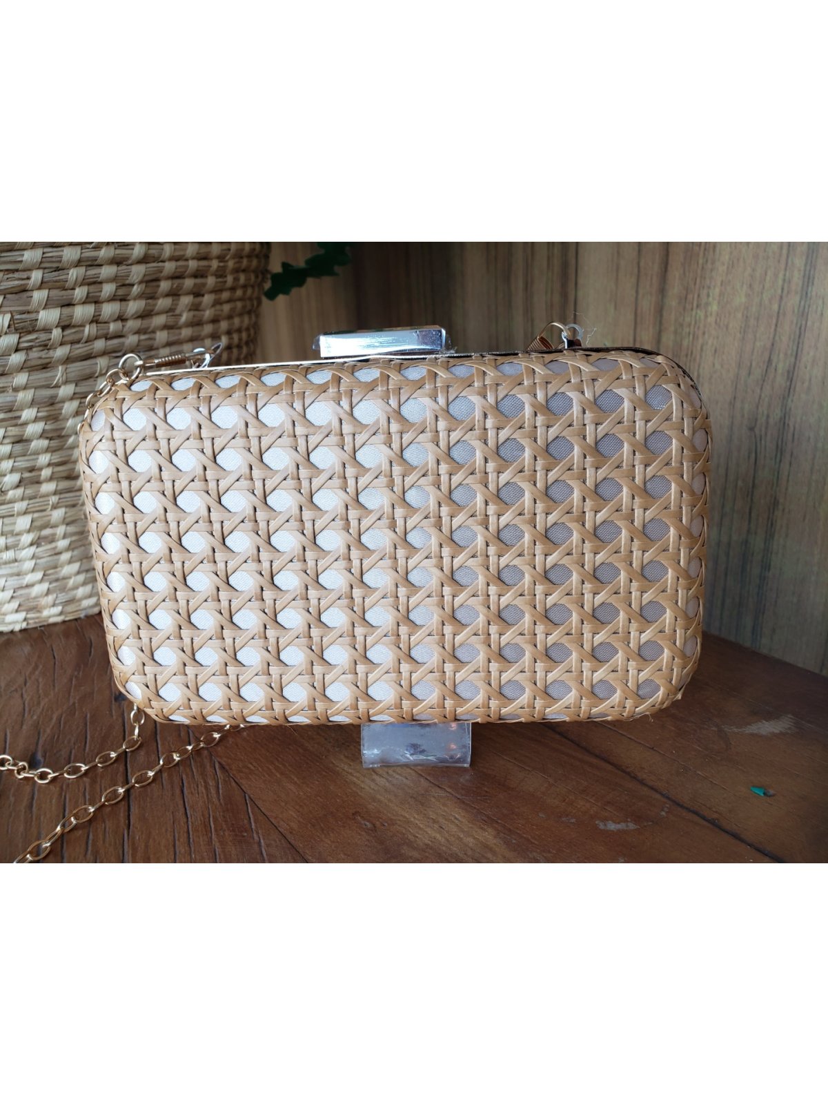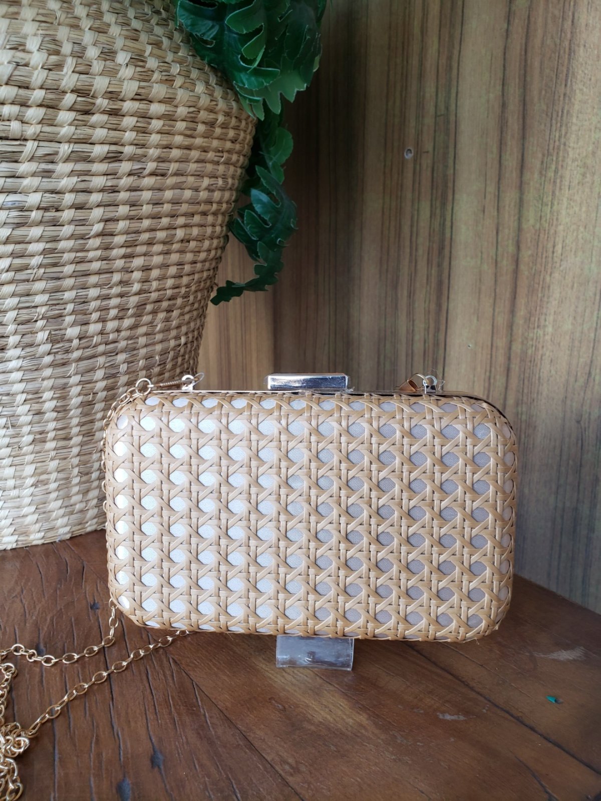 Clutch oval com acabamento em palhinha indiana alça corrente opcional