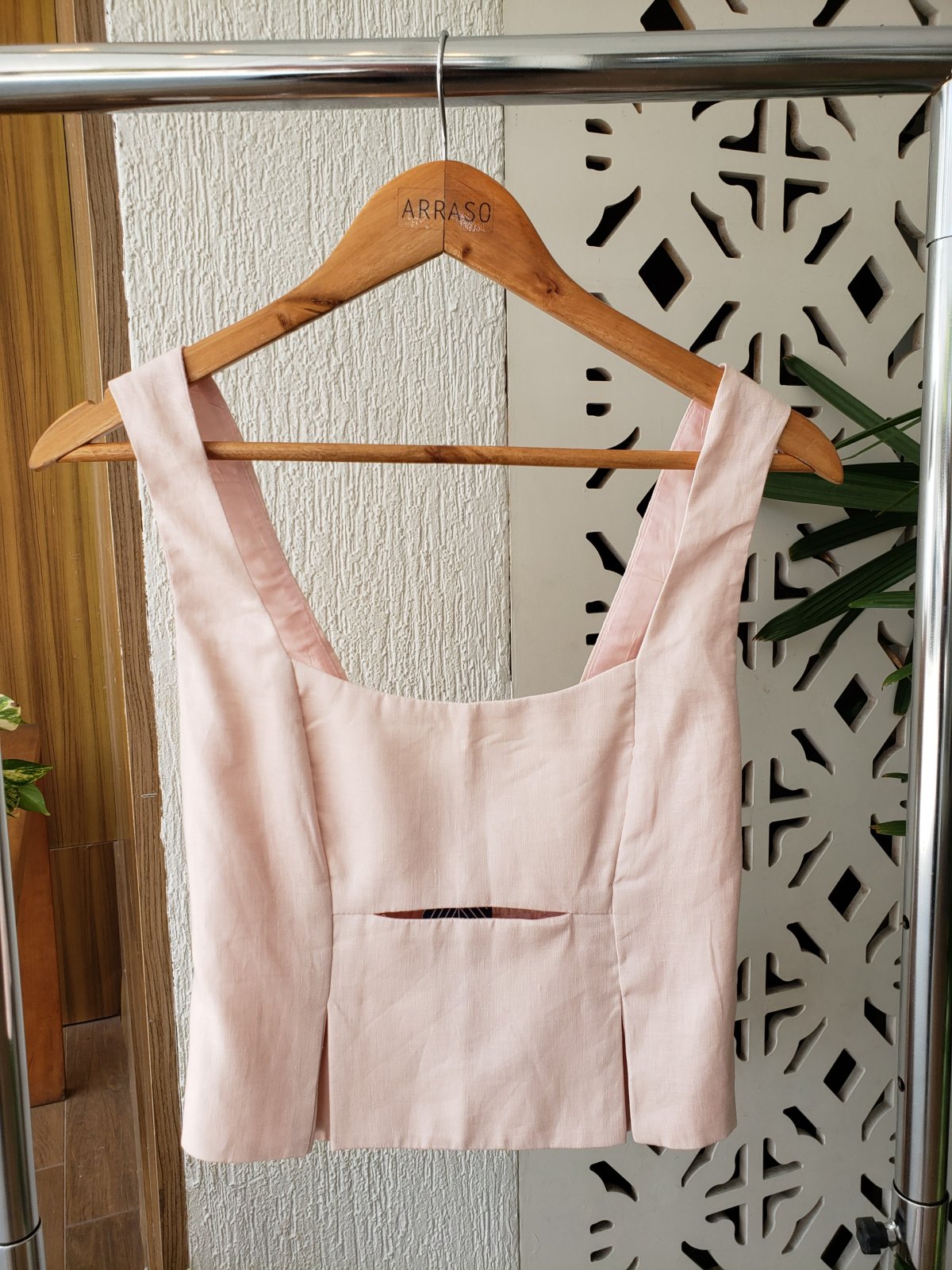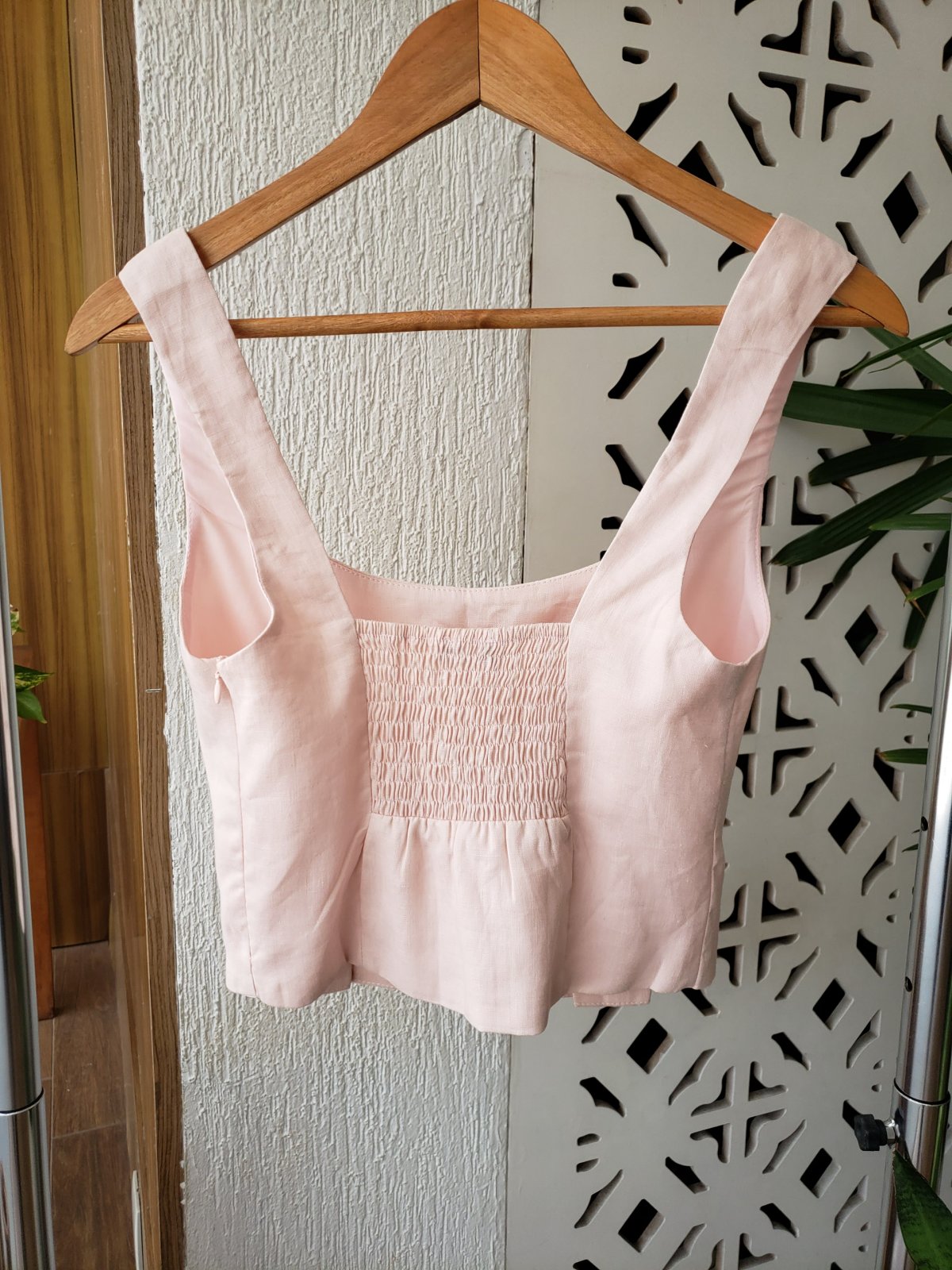 Blusa regata em linho 100%, zíper na lateral, elástico atrás
