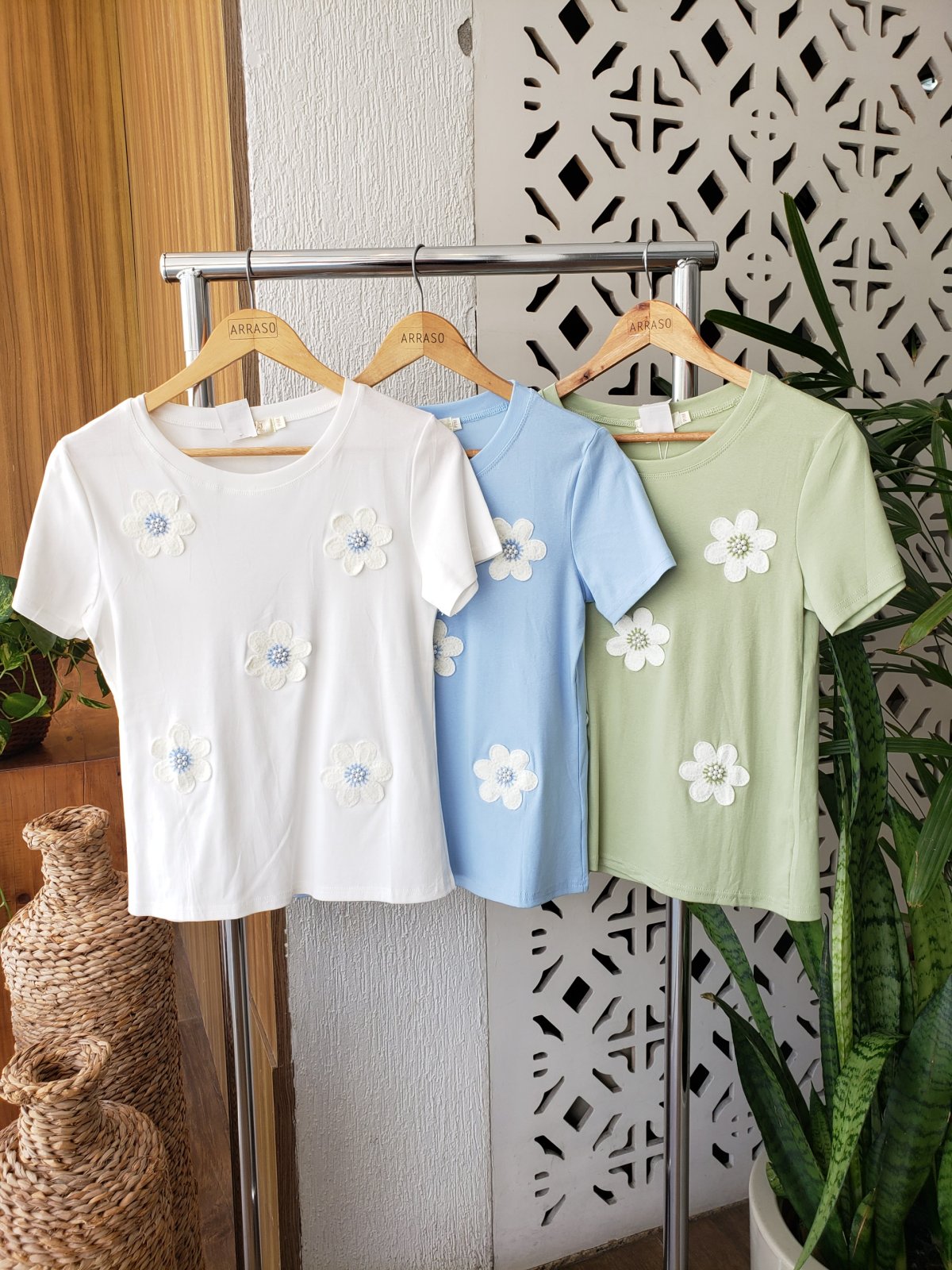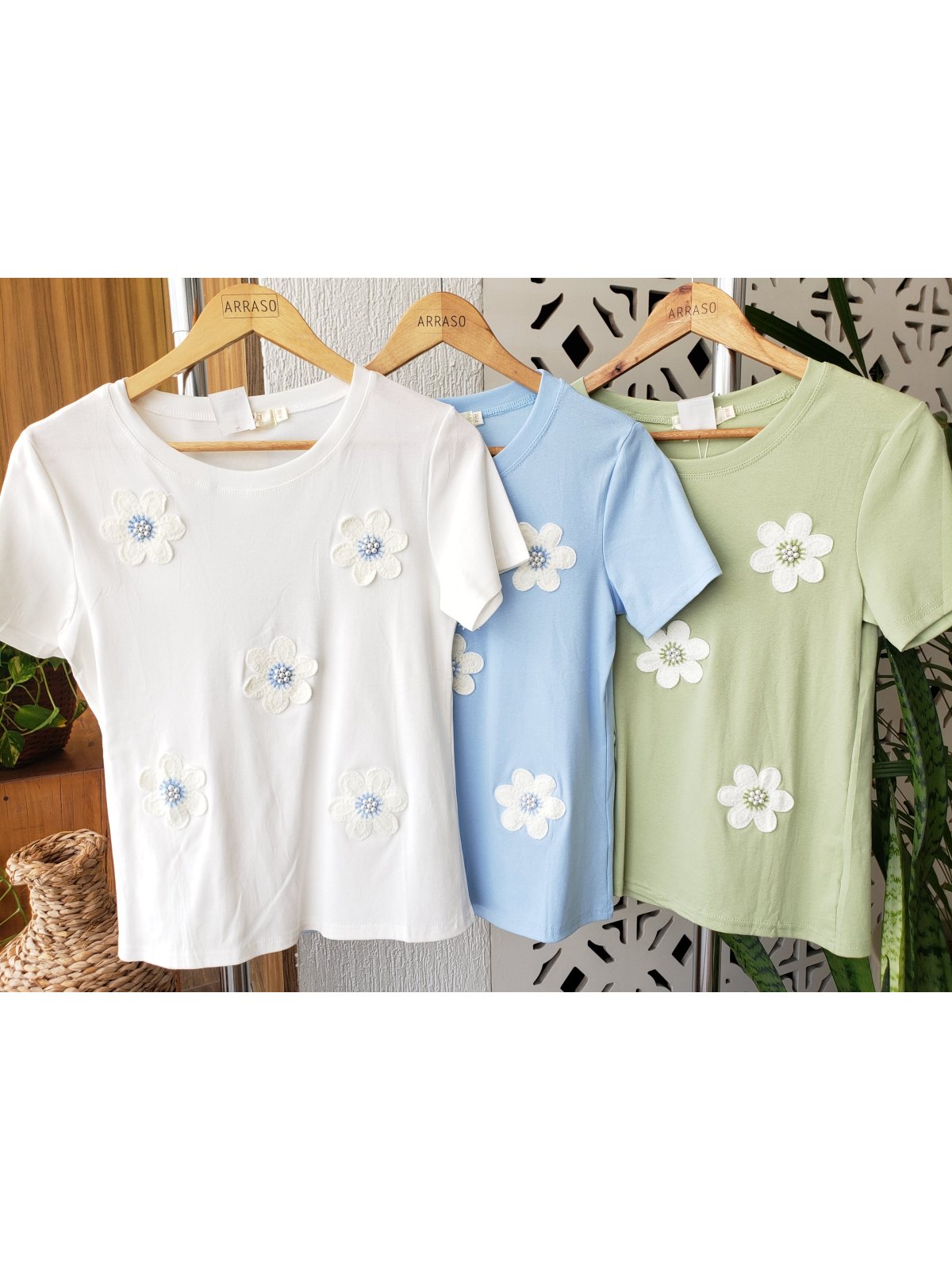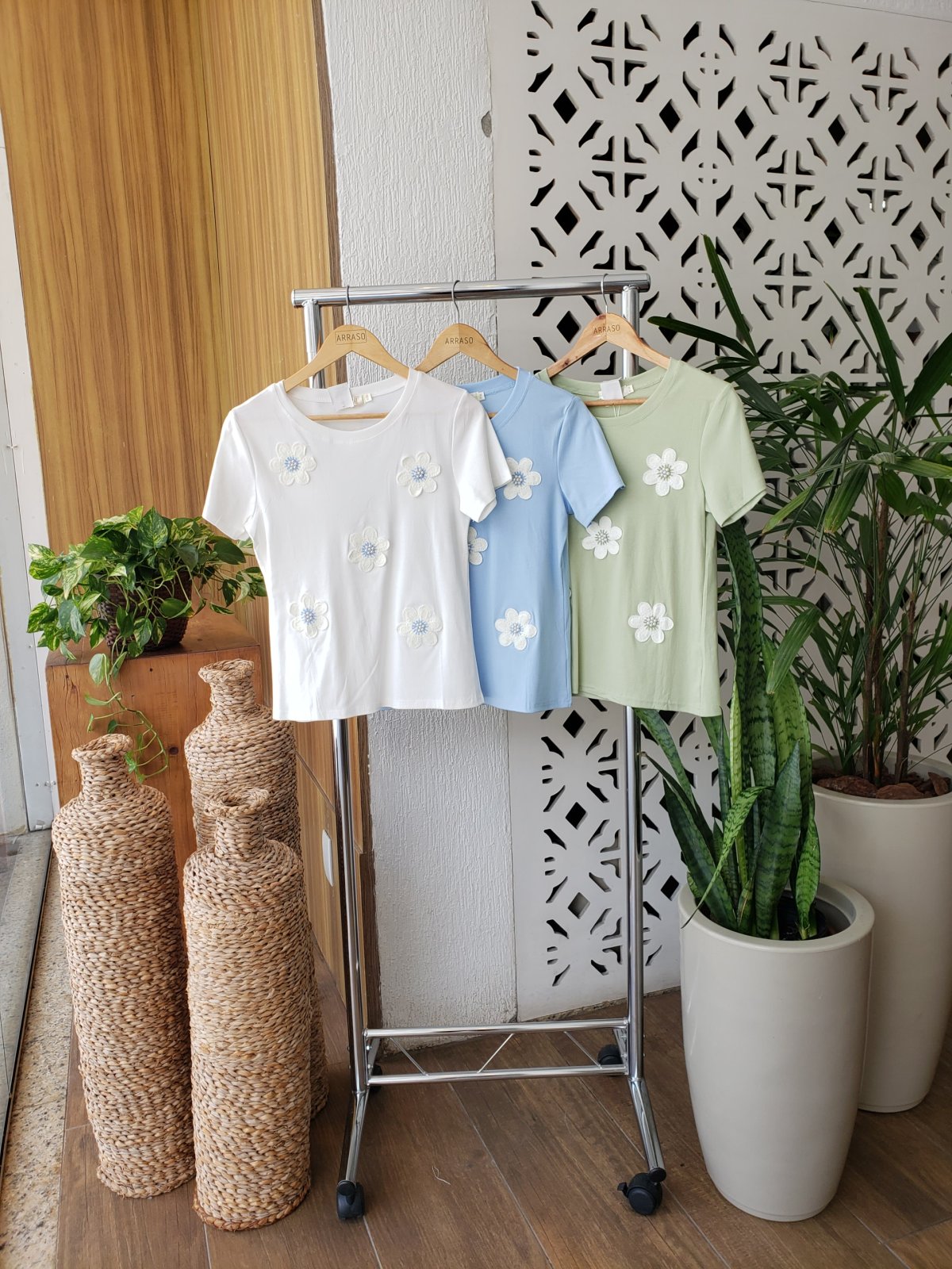 Blusa manga com aplicação em flor