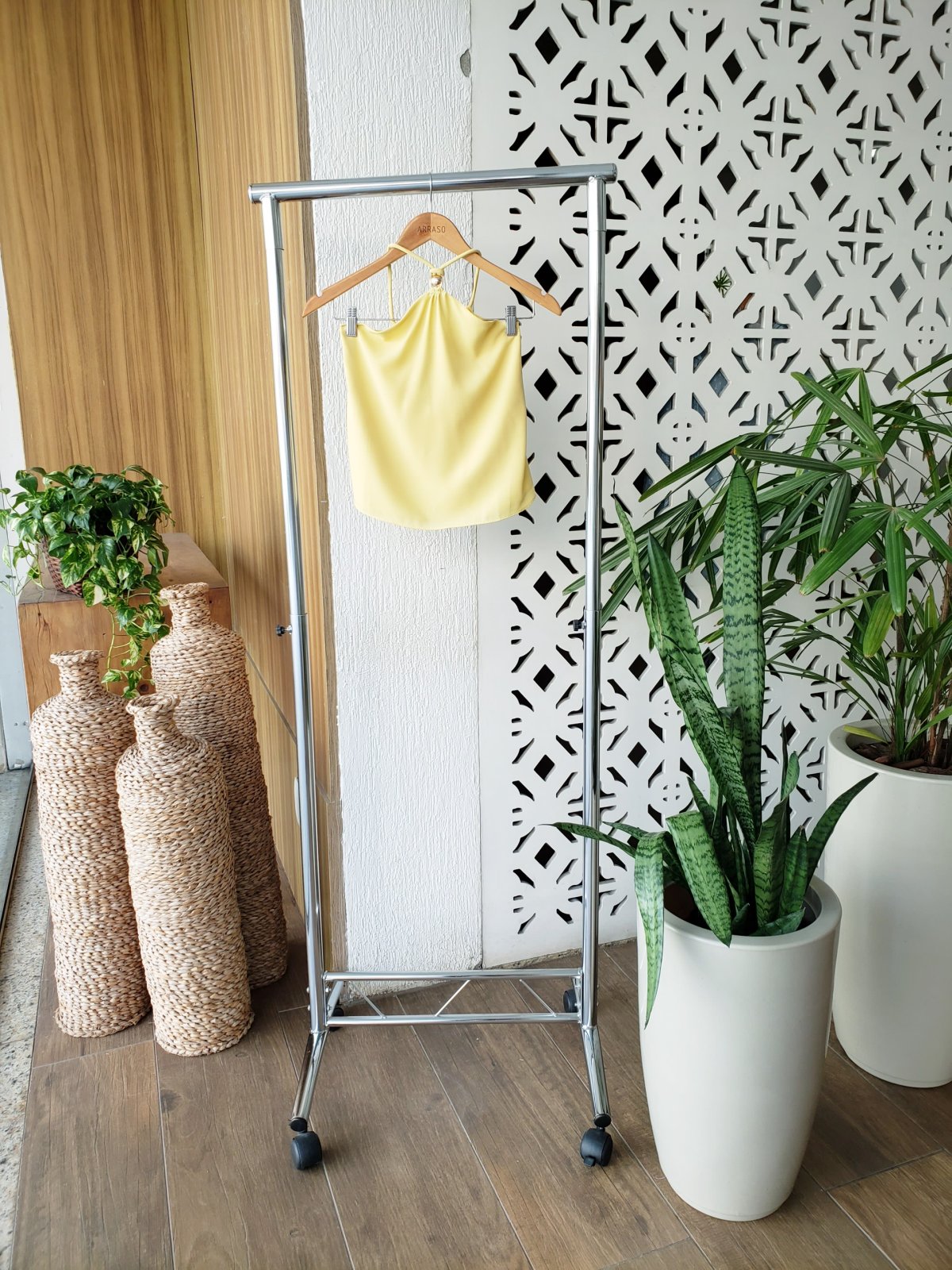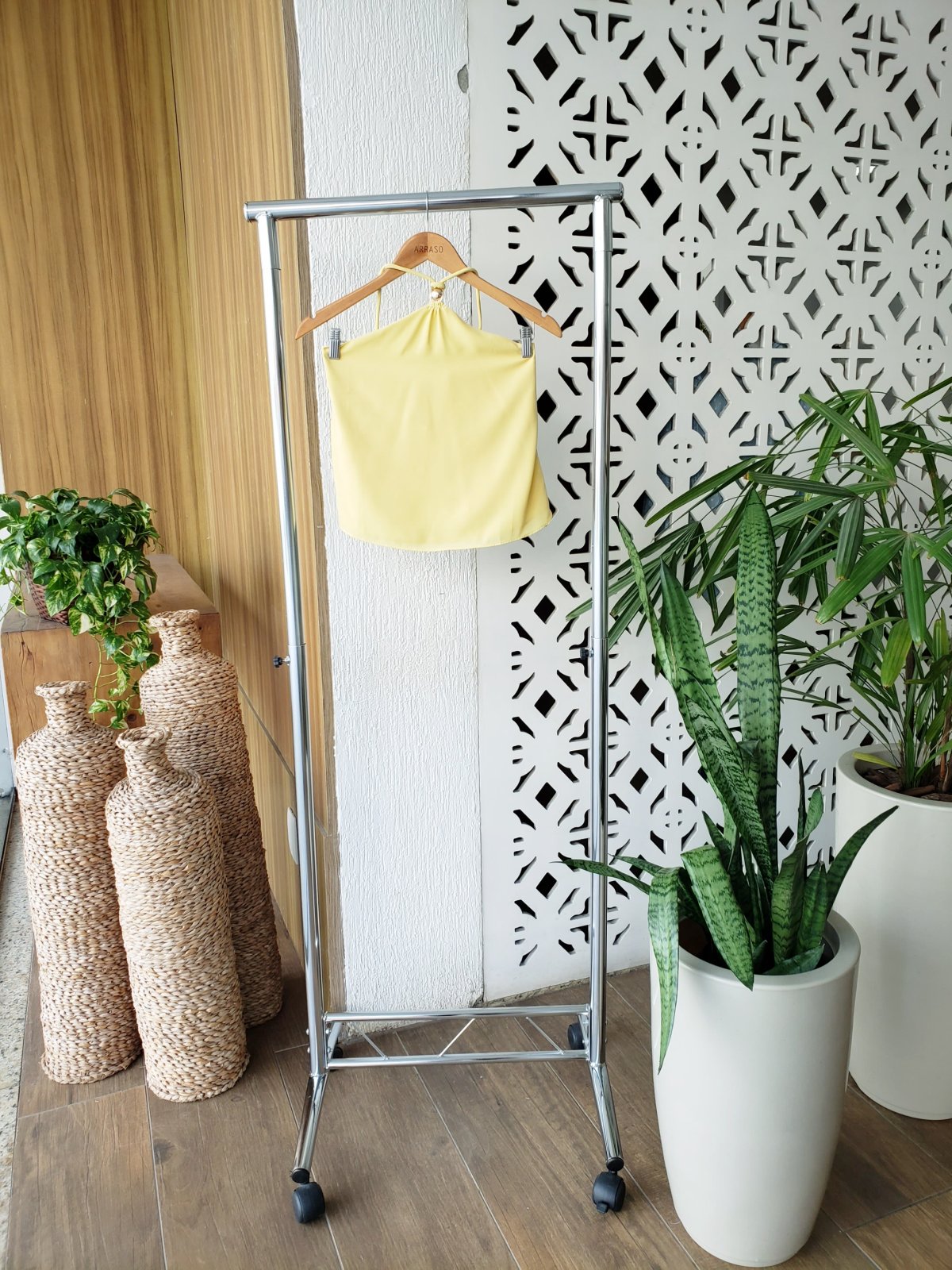 Blusa cavada, amarração atrás.
