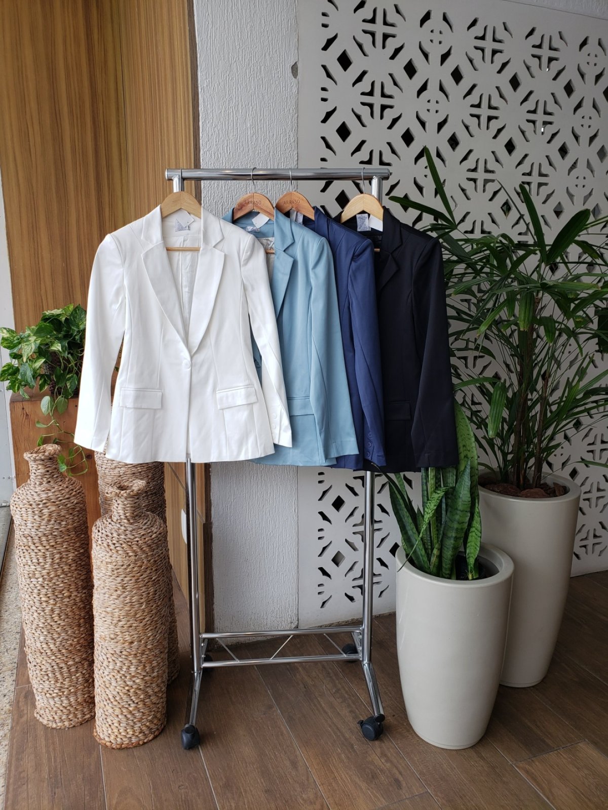 Blazer forrado alongado, bolsos na frente, com botão na frente, 3 botões no punho, corte alfaiataria.
