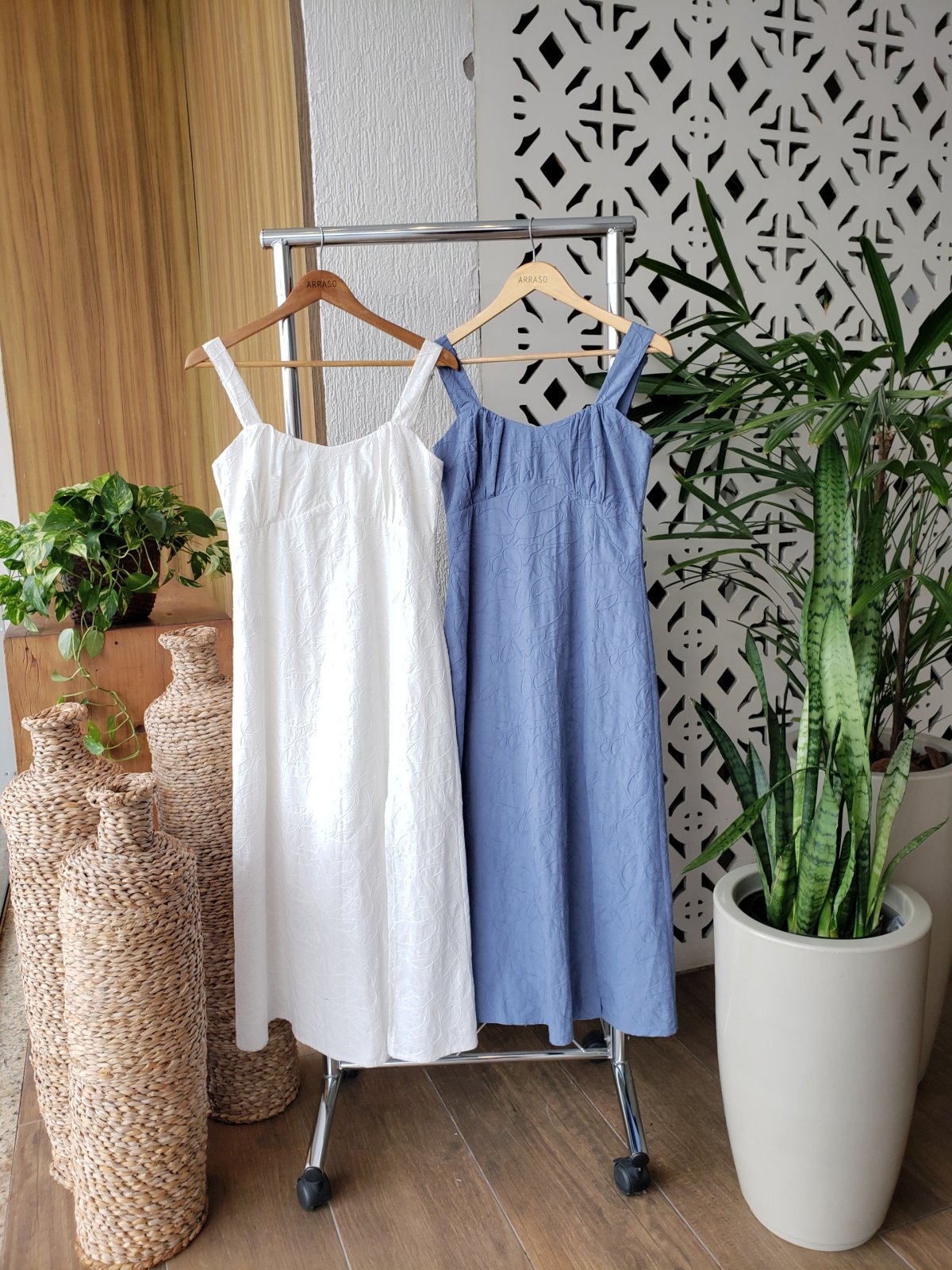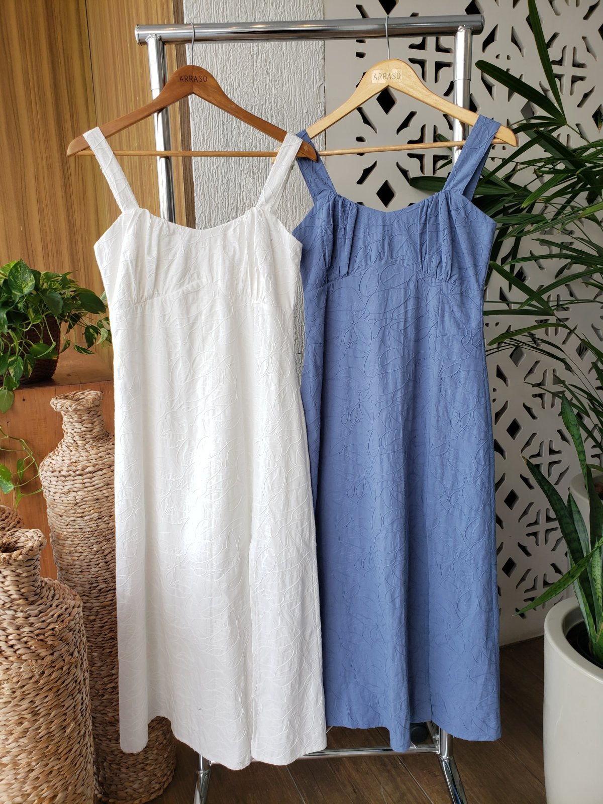 Vestido mídi bordado, alça regulável, forrado, zíper atrás